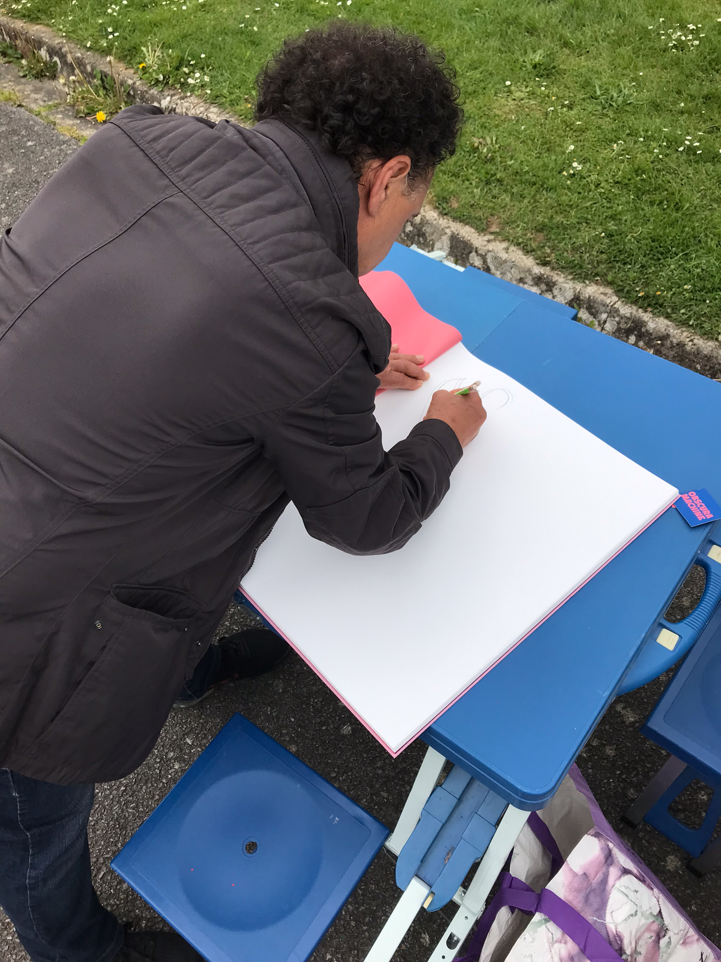 5 • Il fait le portrait avec un crayon ? (le maire)